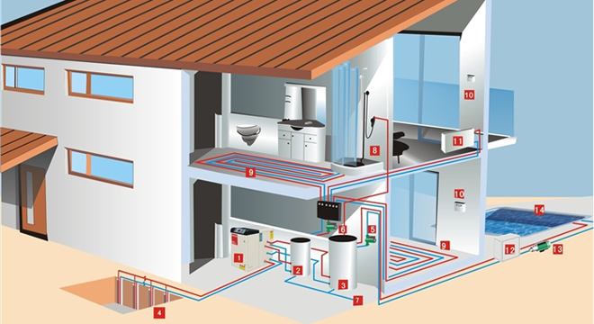 蓄热一般是指蓄热水箱,用来储存所需要的热水。循环系统主要有循环水泵加循环管路,从而保证一打开水龙头就有热水出来。
