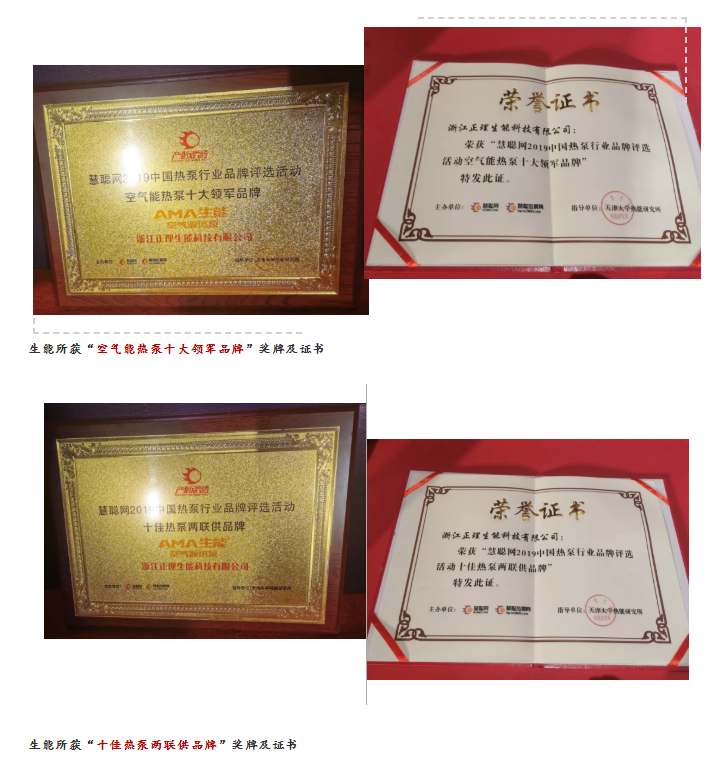 12月6日,2019中国热泵行业品牌评选活动在北京举行颁奖仪式。生能凭借自身实力荣获“空气能热泵十大领军品牌”;生能董事长黄道德因在热泵行业的卓越成就荣获“热泵行业十大领军人物”;另外,生能因冷暖两联供产品推动整个行业的发展荣获“十佳热泵两联供品牌”。